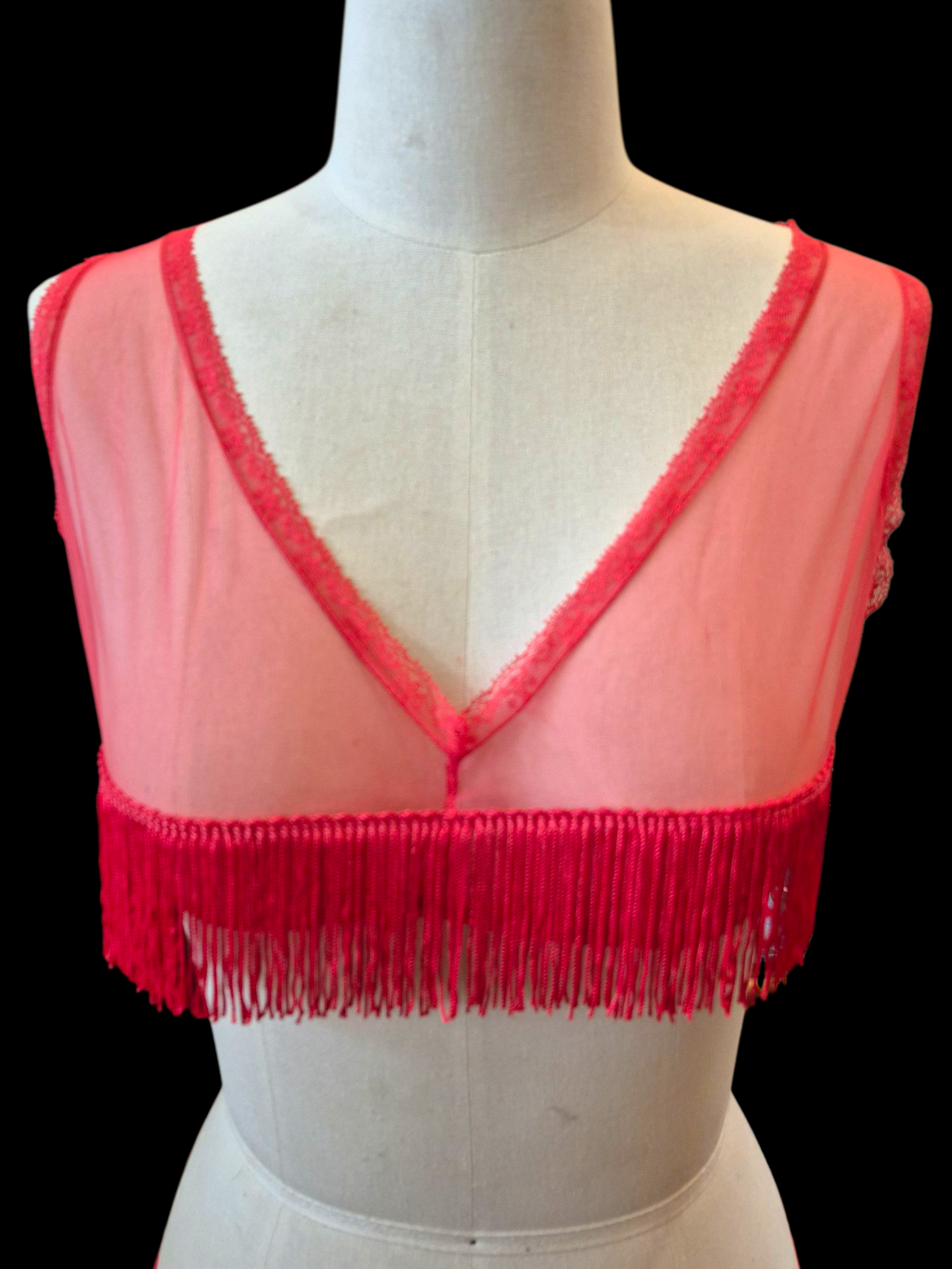 Vintage 1960s 3 pc Red Fringe Burlesque Lingerie Set